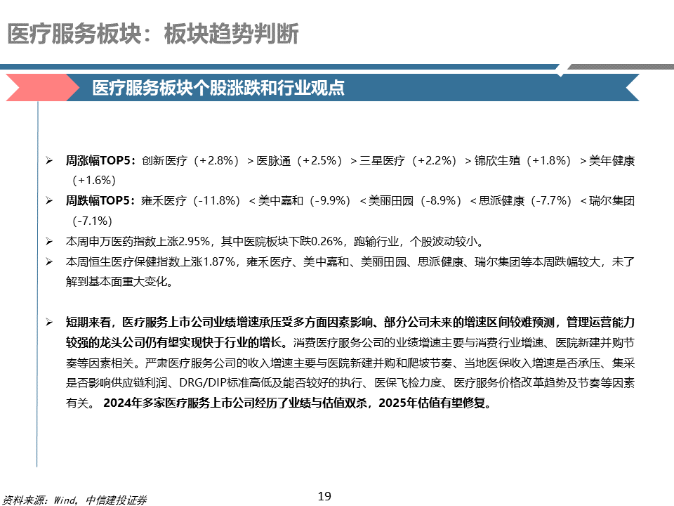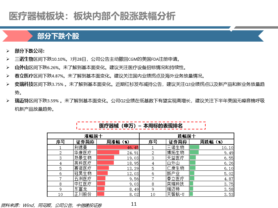 医疗器械及服务:近期医疗器械行业估值修复、多支个股上涨,建议关注行业业绩拐点和国际化投资机会,下半年和25年多家公司有望迎来加速增长。