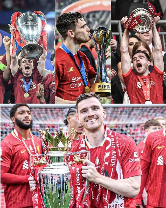 罗伯逊于2017年以800万英镑身价从赫尔城加盟利物浦,逐渐成为俱乐部历史上最伟大的左后卫之一。迄今为止,他为利物浦出场373次,赢得2座英超冠军、1座欧冠冠军、1座足总杯冠军、2座联赛杯冠军、1座世俱杯冠军和1座欧洲超级杯冠军。