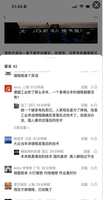 也有理性的声音:德国工业吹了那么多年,拿得出手的增程器呢?EA211到底行不行?这几年增程技术有没有进步?发电功率上去了吗?持续性耐久性可靠吗?——这些才是消费者真正关心的。